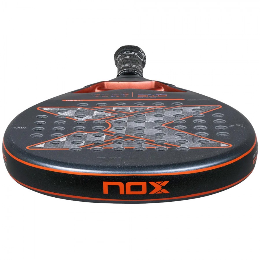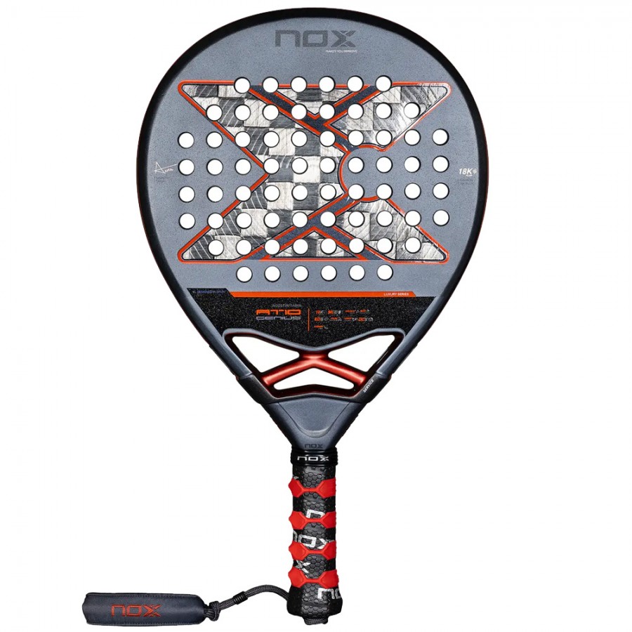 The Nox AT10 Genius 18K Alum 2025 by Agustin Tapia is a high-performance padel racket designed for advanced players, offering a superb combination of powerful offense and versatile control. Endorsed by the padel star, this racket incorporates innovative technologies to ensure a solid feel, excellent spin, and enhanced maneuverability for a complete game.